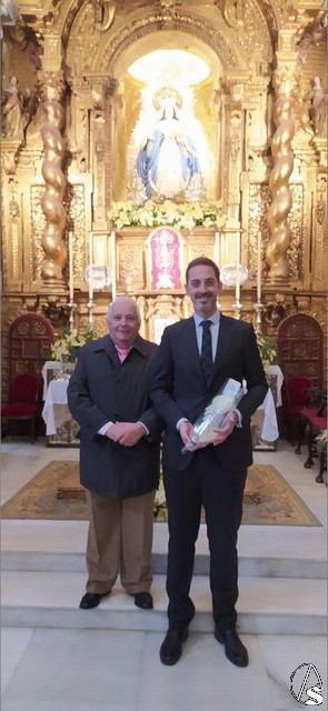 Arte Sacro. El pasado domingo y durante la misa dominical, fueron recibidos en Santa María la Blanca por parte de la hermandad de las Nieves, Mario Daza Olaya y Ricardo Gil Lozano, pregonero y cartelista de las Glorias 2023.