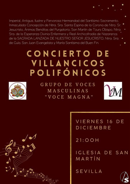 Arte Sacro. Hoy viernes, 16 de diciembre, la hermandad de la Sagrada Lanzada acogerá un concierto de villancicos polifónicos a cargo del grupo de voces masculinas "Voce Magna".