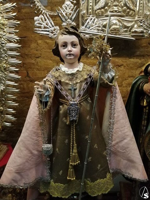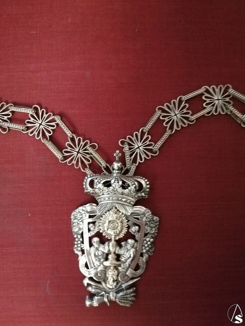 Arte Sacro. Una pieza magnífica de platería del siglo XVIII, un Toisón de plata con cadena original, ha sido donado en el día de ayer para el Niño Jesús llamado el galán, obra atribuida a Pedro Roldán, del Museo del Santo Ángel. Se trata de una cuidada pieza, en perfecto estado de conservación, que tiene relación con alguna corporación sacramental por la iconografía que representa un ostensorio con ángeles.