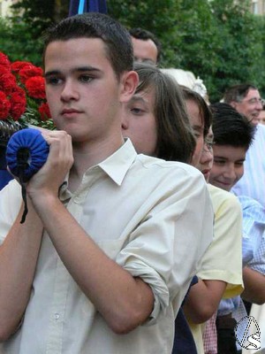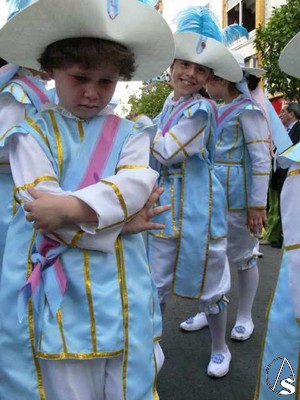 El cortejo lo forman los distintos estamentos del colegio como los alumnos, antiguos alumnos, profesores, etc.. También podemos ver niños y niñas vestidos de primera comunión y niños vestidos de seises.