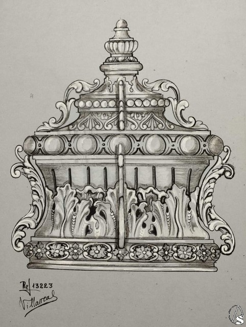 Esta pieza se trata de una donación de la cuadrilla de capataces y costaleros de la Stma. Virgen de los Desamparados.