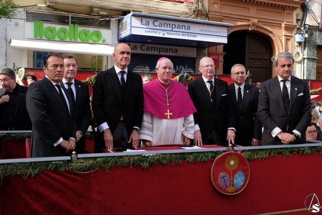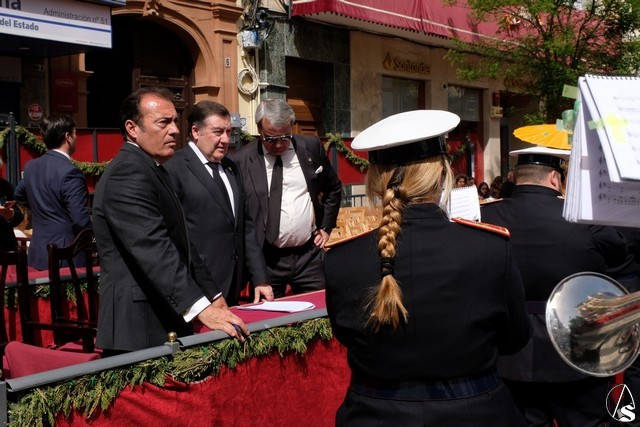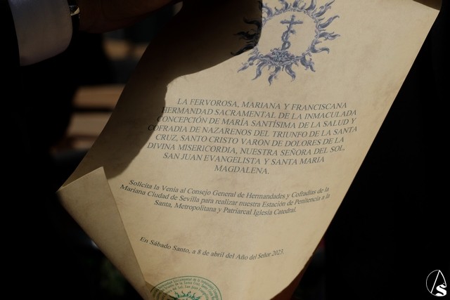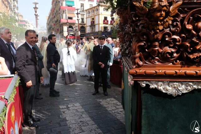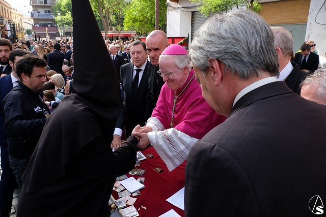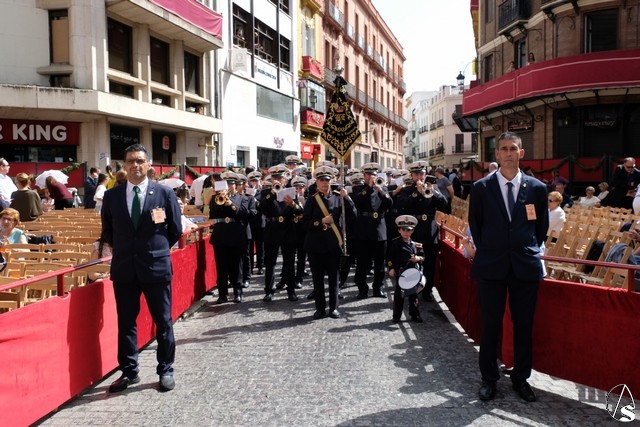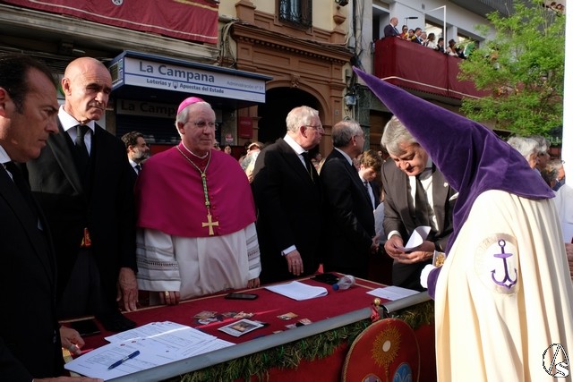 A las 17,24 horas pedía la venia la hermandad de la Trinidad, un minuto antes de lo previsto. La banda de cornetas de las Cigarreras interpretó para el paso del Sagrado Decreto dos marchas. Los costaleros de este paso lo llevaron con un andar con cambios como costeros o izquierdos, levantando los aplausos de los abonados. El paso llevó flores en tonalidad blanca. El paso del Stmo. Cristo de las Cinco Llagas entró en la Campana con las marchas “La Pasión” y “El hijo de Dios” interpretadas por la banda del Stmo. Cristo de las Tres Caídas, con un buen andar de sus costaleros. El exorno floral estuvo compuesto por claveles rojos. Como es costumbre, al palio de la Virgen de la Esperanza de la Trinidad le fue lanzada una petalada desde la azotea del edificio del Ocaso. La banda de la Oliva de Salteras le interpretó dos marchas, llevada con un andar lento por los costaleros.