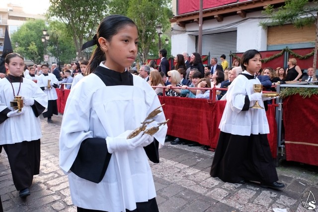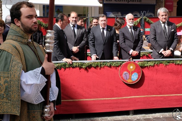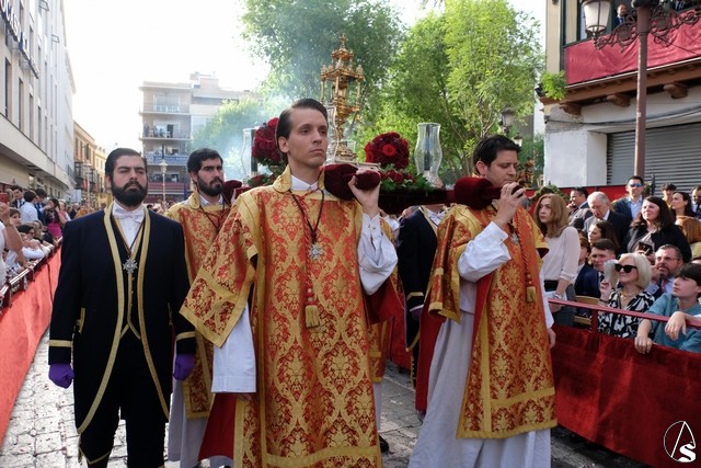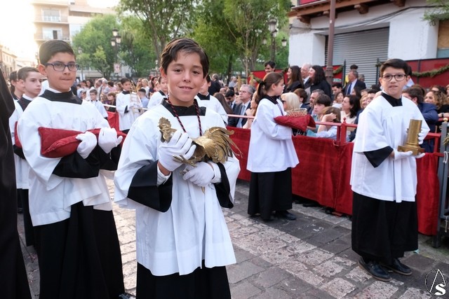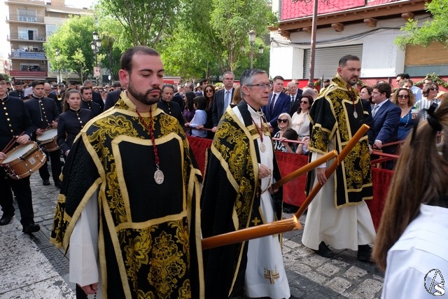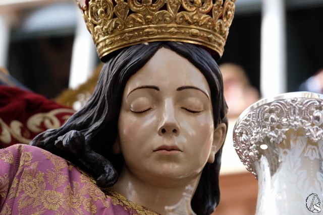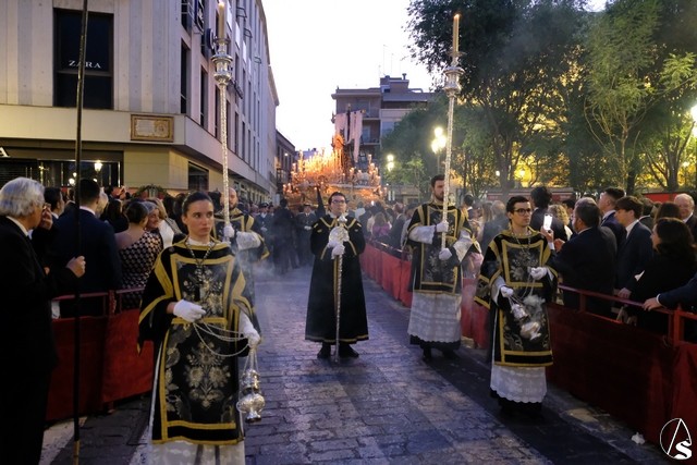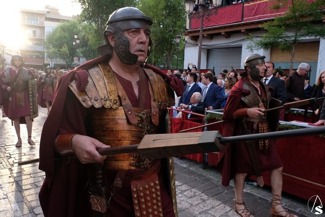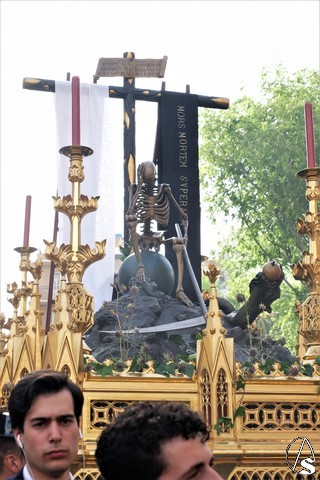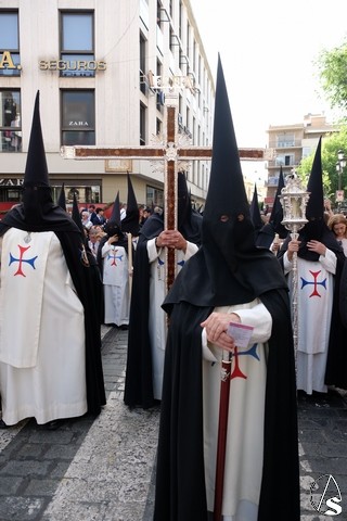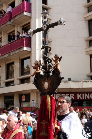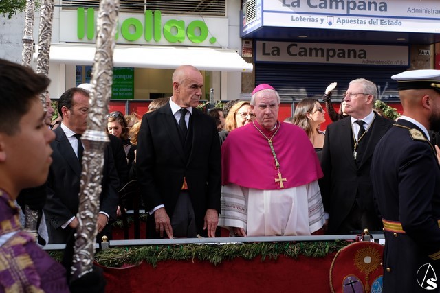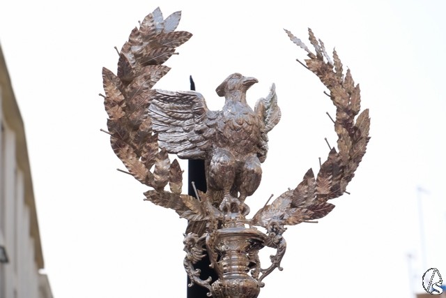 El paso de la Exaltación continuó el discurrir de la procesión magna. La cruz del Señor llevó los remates y las potencias en plata de ley. El exorno floral estuvo compuesto por flores de tonalidades moradas. Las imágenes secundarias cambiaron sus atuendos.