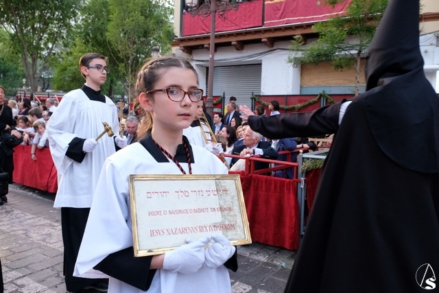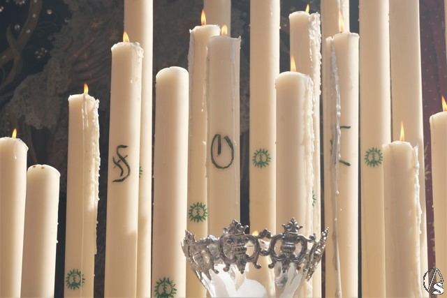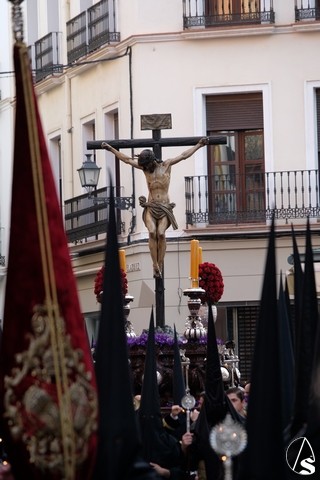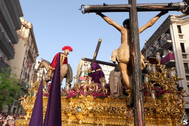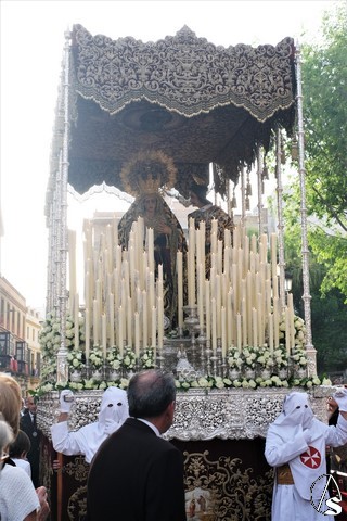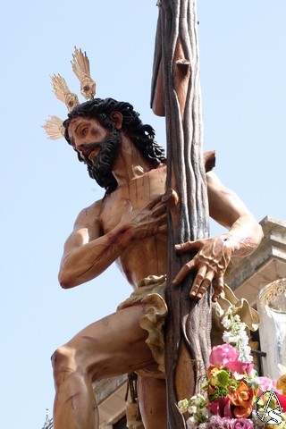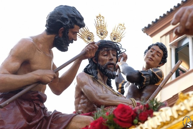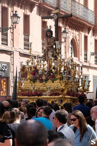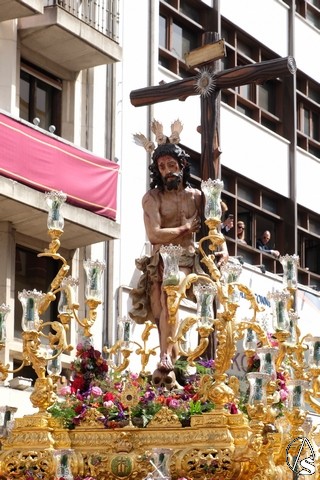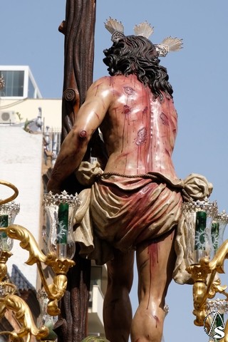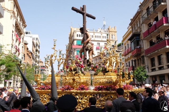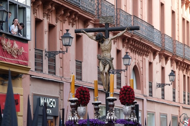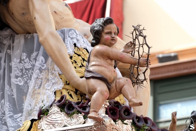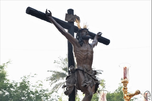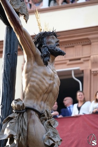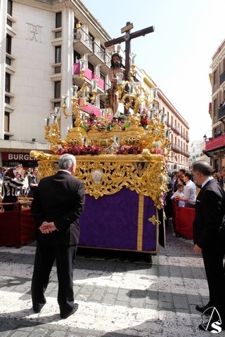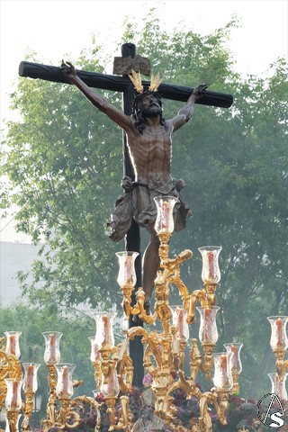 El Cristo de la Expiración (el Cachorro) pasó con corona de espinas y potencias. Concretamente con dos potencias, porque la tercera se le cayó momentos antes. El paso llevó flores silvestres y corcho.
