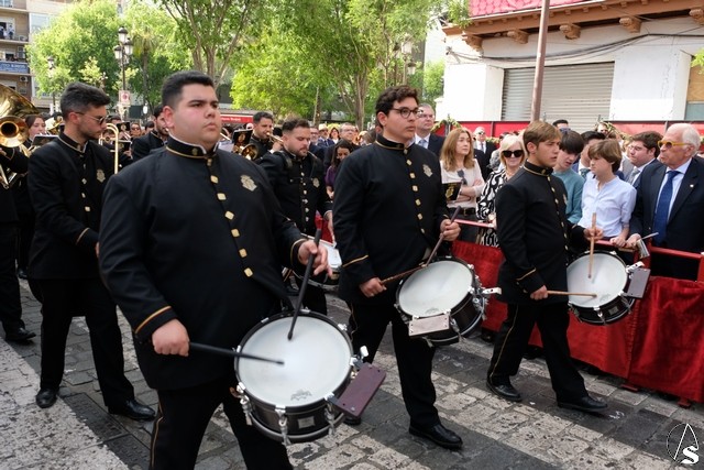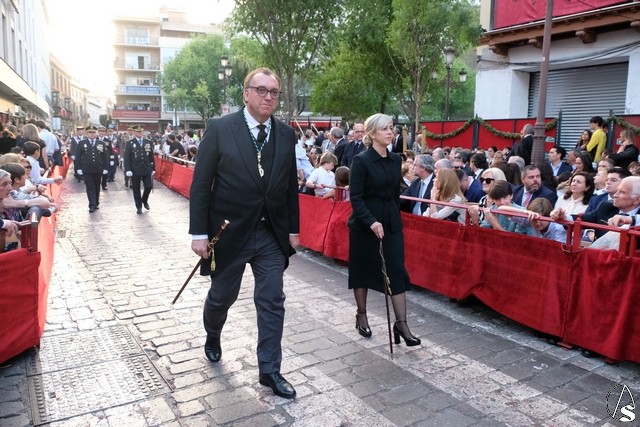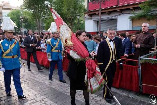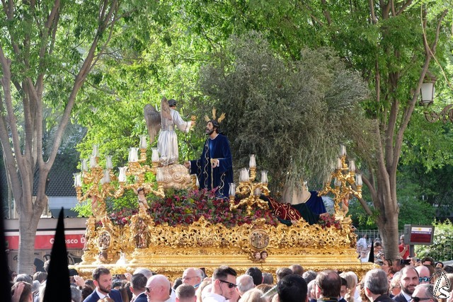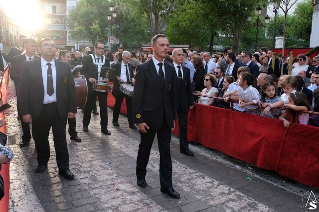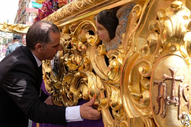 A continuación pasó el Señor de Pasión, que lo hizo de día, con lo que se pude ver mejor tanto a la imagen como la magnificencia del paso. Llevó la túnica bordada y el paso lució rosas rojas.