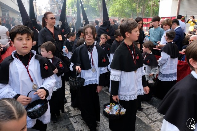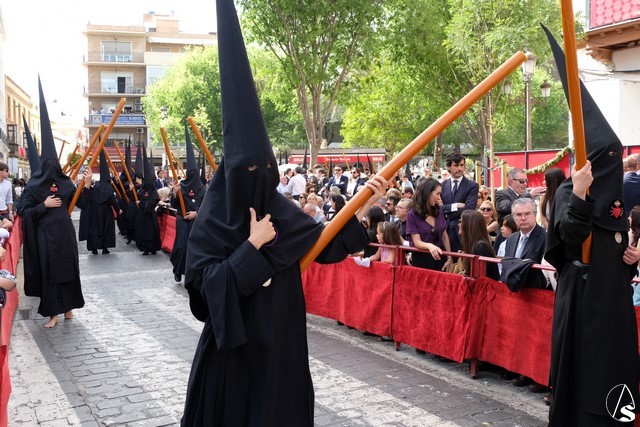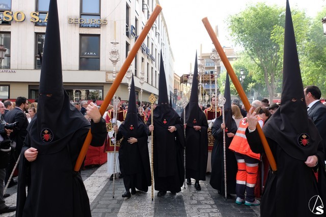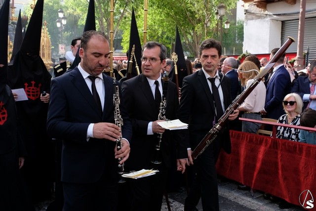 Terminó el cortejo de pasos invitados el de la Quinta Angustia. El paso llevó claveles rojo sangre.