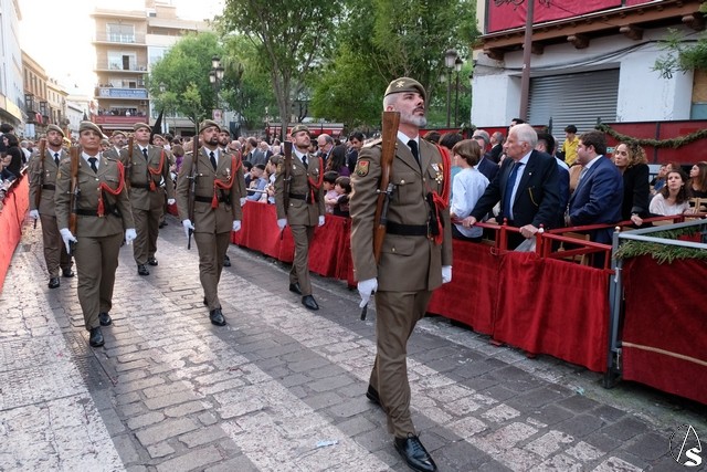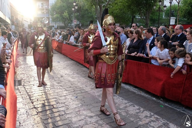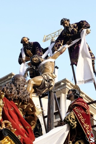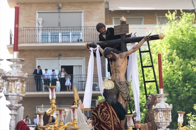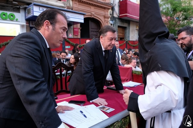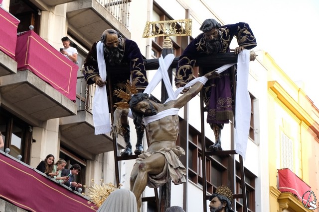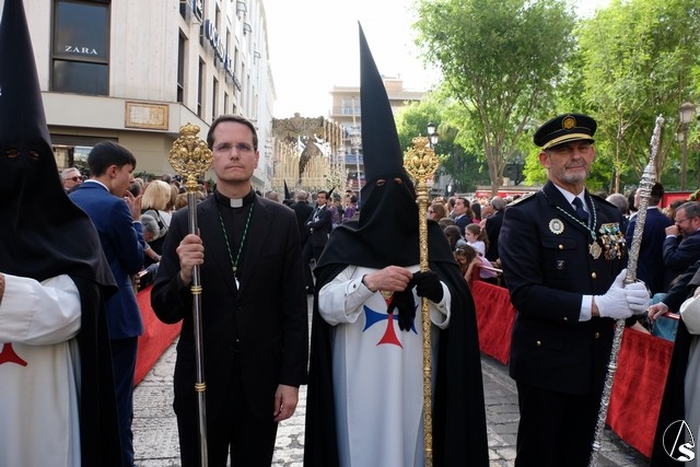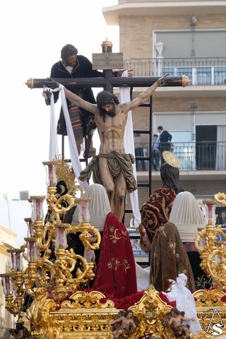 El Señor de la Victoria, de la hermandad de la Paz fue el primero en salir de su templo, por la lejanía con el centro. El Señor llevó potencias y corona de espinas y una túnica roja con el mantolín bordado. El exorno estuvo compuesto por flores rojas.
