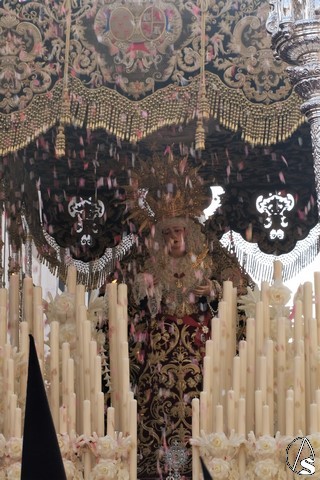 La Virgen de la Amargura fue la nota distinta a los pasos de misterio. Fue el único paso que procesionó por la carrera oficial con el acompañamiento musical que estuvo a cargo de la Banda del Carmen de Salteras que interpretó “Amarguras”. La Virgen lució la corona de la coronación del año 1954. El paso llevó rosas blancas, rosas de pitimí del mismo color y azahar entre las rosas.