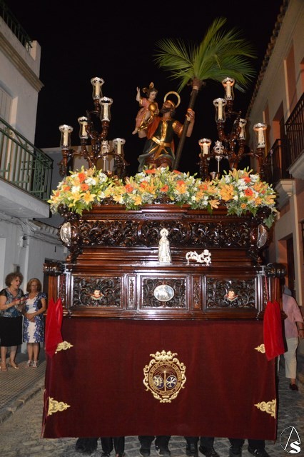 Manuel Pinto Montero. El pasado sábado 8 de julio San Cristóbal Mártir, Patrón de Burguillos, procesionó por las calles de la localidad tras los tradicionales cultos que celebra su Hermandad en este mes de julio. El repicar de las campanas y el estallido de cohetes anunciaban la gloriosa salida procesional del Patrón burguillero desde el Templo Parroquial consagrado a este popular Santo.