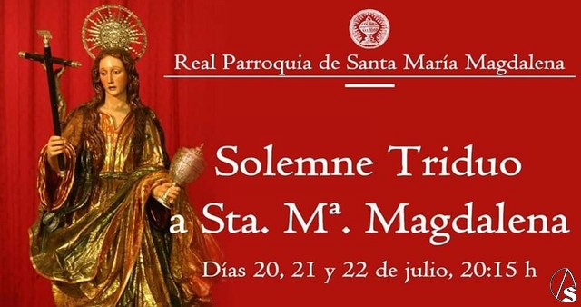 Arte Sacro. La parroquia de la Magdalena celebra solemne triduo en honor a su titular, Santa María Magdalena, los días 20, 21 y 22 a las 20,15 horas, con motivo de la celebración de su solemnidad el sábado día 22 de julio.