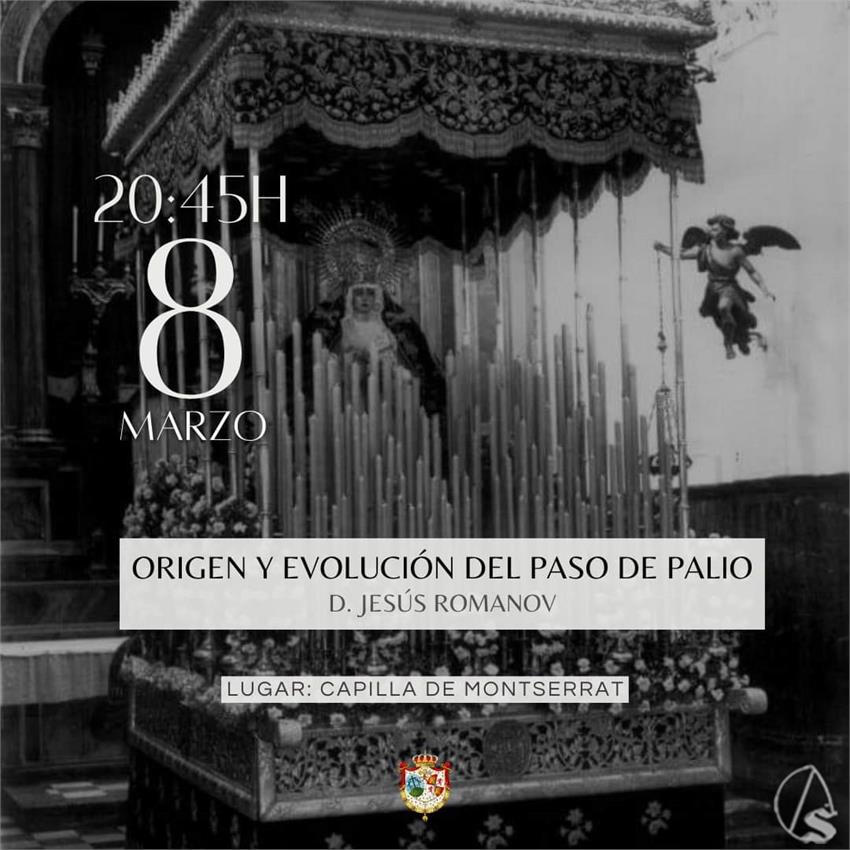 FB_IMG_1708924017881Arte Sacro. El viernes 8 de marzo (D. m.) el profesor, investigador y colaborador de televisión Jesús Romanov (Jesús Romanov López-Alfonso) impartirá una conferencia sobre el siguiente tema: “Origen y evolución del paso de palio” en la capilla.