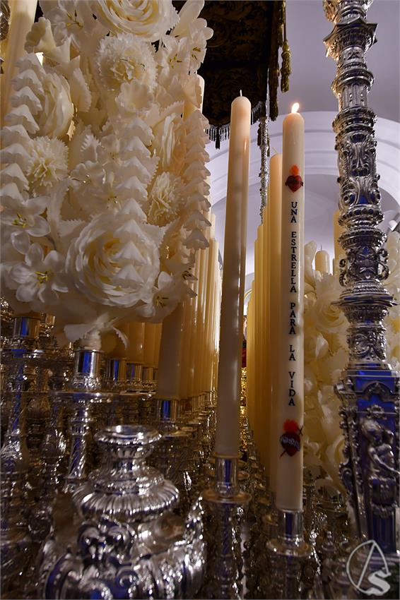 Arte Sacro. El pasado Viernes de Dolores, 22 de marzo, en la Capilla de la Estrella, tuvo lugar el acto de bendición y encendido simbólico del cirio «Una Estrella para la Vida», que representa a los Donantes de Órganos, que lucirá la Virgen de la Estrella en la candelería del paso de palio el próximo Domingo de Ramos.