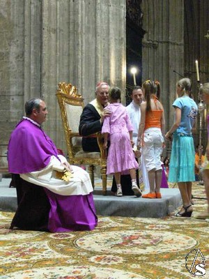 Daniel García Acevedo. El miércoles 28 de junio a las 20,30 horas y con una Catedral a rebosar de público, tuvo lugar el acto de bienvenida del cardenal arzobispo de Sevilla, Carlos Amigo Vallejo a los niños bielorrusos acogidos por las hermandades de Sevilla y su provincia.