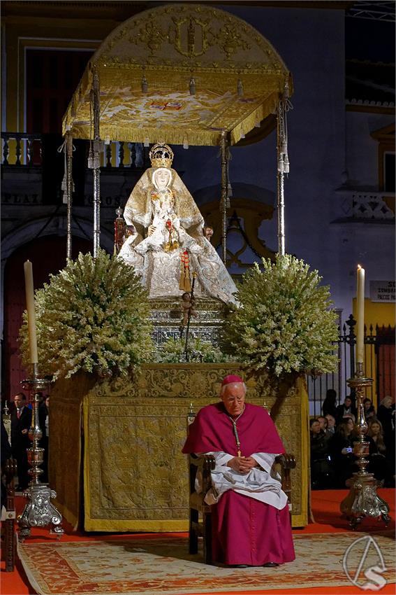 Todas las imágenes participantes estaban situadas en el Trascoro del templo catedralicio, excepto la Virgen de los Reyes, que presidió la misa de clausura a las 11:00 horas en el altar de Jubileo, oficiada por el arzobispo de Sevilla, Monseñor José Ángel Saiz Meneses. A las 16:00 horas comenzaba la procesión para, la Virgen de los Reyes, situarse en la presidencia, justo delante de la Real Maestranza, en la que se encontraban monseñor Bernardito Auza, el arzobispo de Sevilla Saiz Meneses, el presidente de la Junta de Andalucía, Juan Manuel Moreno Bonilla y el alcalde de Sevilla, José Luis Sanz.