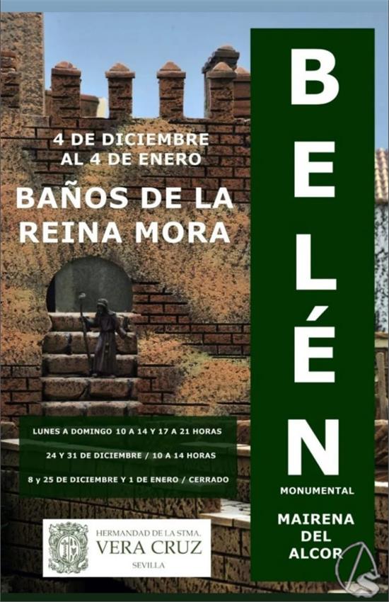 Arte Sacro. El Belén que se instala en los Baños de la Reina Mora, de la hermandad de la Vera Cruz, en la presente edición está dedicada a la localidad sevillana de Mairena del Alcor, y contiene monumentos y edificios significativos del pueblo.