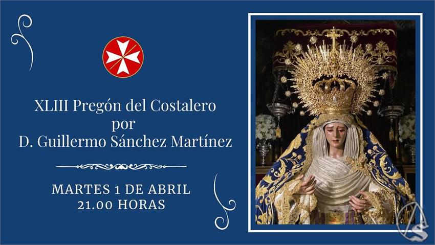 Arte Sacro. Hoy martes, 1 de abril, a las 21 horas en la iglesia de San Esteban tendrá lugar el XLIII Pregón del Costalero a cargo de Guillermo Sánchez Martínez que será presentado por el pregonero del año pasado Jose Manuel Valle Herrera.