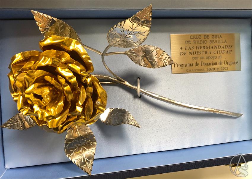 La Rosa de Pasión la concedió el programa cofrade "Cruz de Guía" de la Cadena Ser a las Hermandades de Sevilla por su labor a favor de las donaciones de órganos y está depositada junto a la Padrona de los Donantes de Órganos de Sevilla, la Virgen de las Angustias de la Hermandad de los Gitanos.