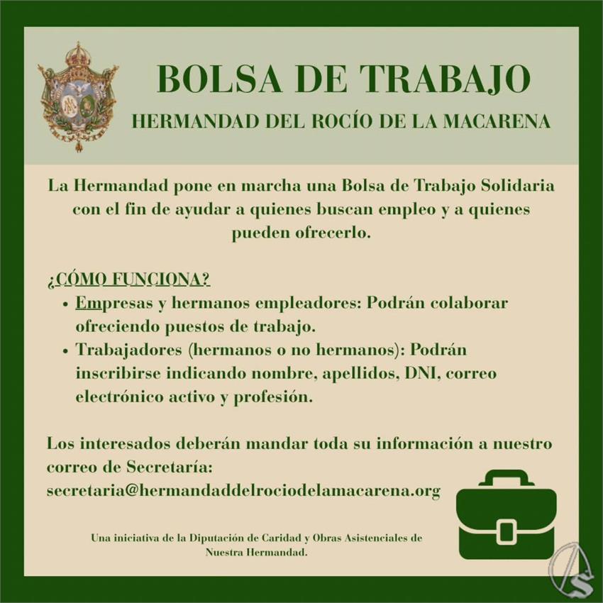 Tanto empleadores como potenciales empleados deberán mandar toda su información al correo de Secretaría: secretaria@hermandaddelrociodelamacarena.org
