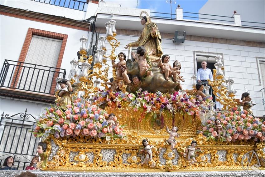 A las diez y media las campanas y los cohetes anunciaban el glorioso momento en el que la Virgen de la Asunción abandonaba el Templo Parroquial y su pueblo se desbordaba de emoción y mostraba sus sentimientos por su Asunción gloriosa. Los sones de la Banda de Música de las Cigarreras se unían a los vítores del pueblo de Cantillana que la vitoreaba por cada rincón por la que transitaba la Santísima Virgen.