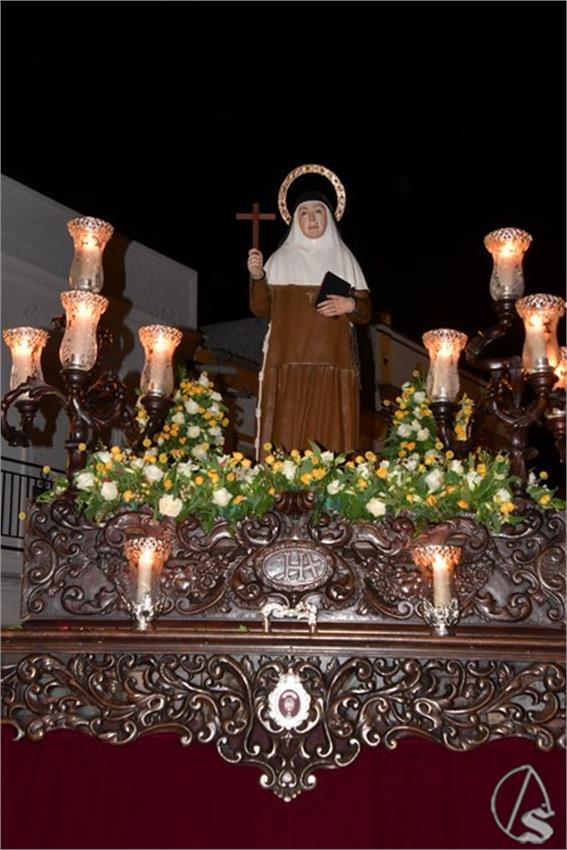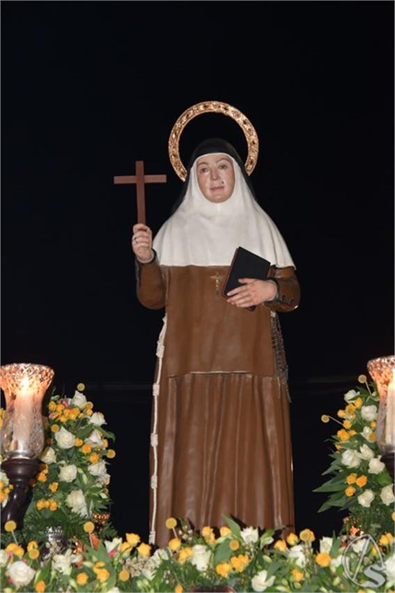 Las Hermandades de la localidad y la comunidad Parroquial de Santa María la Blanca junto al Ayuntamiento y feligreses han colaborado para que este día fuese especial para las Hermanas de la Cruz y para el pueblo de Fuentes de Andalucía que tanta devoción tiene por la Santa. La procesión se inició desde la Ermita de San Francisco donde es venerada la imagen que tallara don Manuel Domínguez Rodríguez en el año 1984. La bella imagen ha procesionado en tres ocasiones por las calles de la localidad. El 4 de mayo de 1984 con motivo de su bendición en la Parroquia de Santa María la Blanca y en junio de 2003 con motivo de la Canonización de la Santa sevillana por San Juan Pablo II.