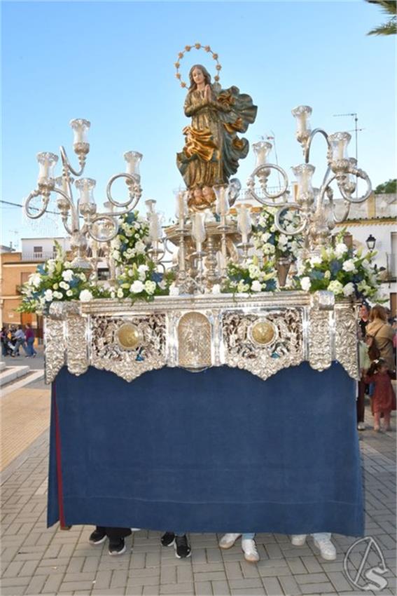 La talla de la Purísima Concepción es obra de siglo XX, se trata de una de las imágenes que posee la Parroquia que cuenta con tres tallas de la Purísima Concepción de los tres últimos siglos. Para esta ocasión la bella imagen de la Purísima Concepción procesionó sobre el paso de la Patrona de Lantejuela, la Virgen del Rosario junto a otros enseres cedidos por las Hermandades de la localidad, como el Carmen o Jesús Nazareno. El paso procesional fue exornado con varias flores de tonalidades blancas y azules.