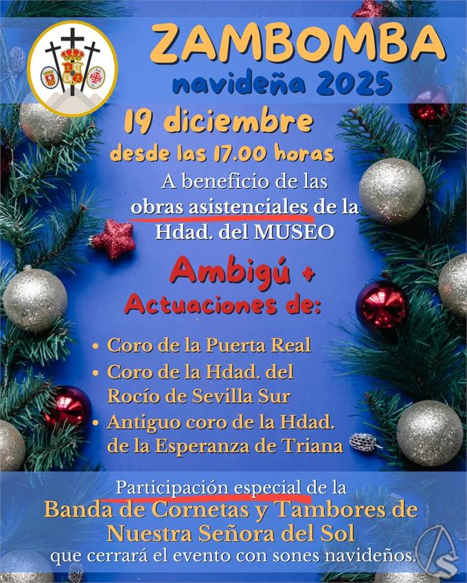 Arte Sacro. La hermandad del Museo realizará hoy, viernes 19 de diciembre una Zambomba Navideña desde las 17 horas.