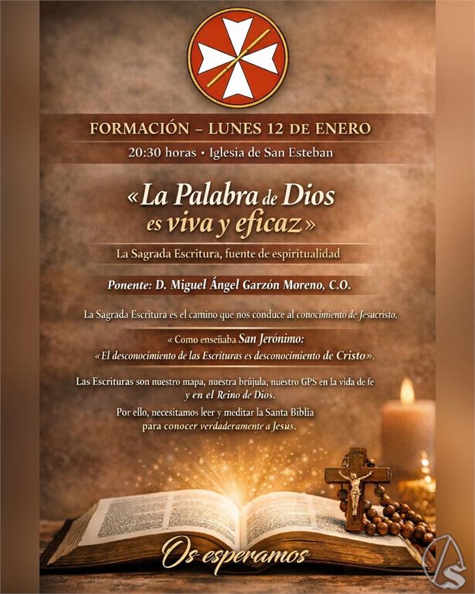 Arte Sacro. El próximo lunes, 12 de enero, a las 20,30 horas, tendrá lugar una formación en la iglesia de San Esteban titulada «La Palabra de Dios es viva y eficaz», dedicada a la Sagrada Escritura como fuente de espiritualidad.
