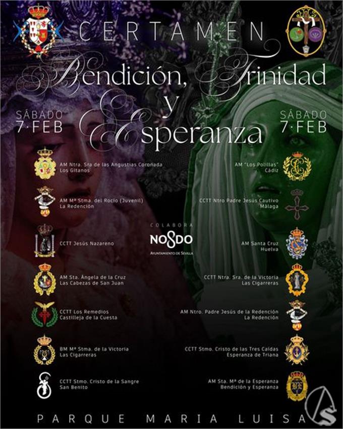 El sábado 7 de febrero el Parque de María Luisa acogerá el certamen “Bendición, Trinidad y Esperanza”, organizado conjuntamente por la Hermandad de Bendición y Esperanza y la Hermandad de la Trinidad.