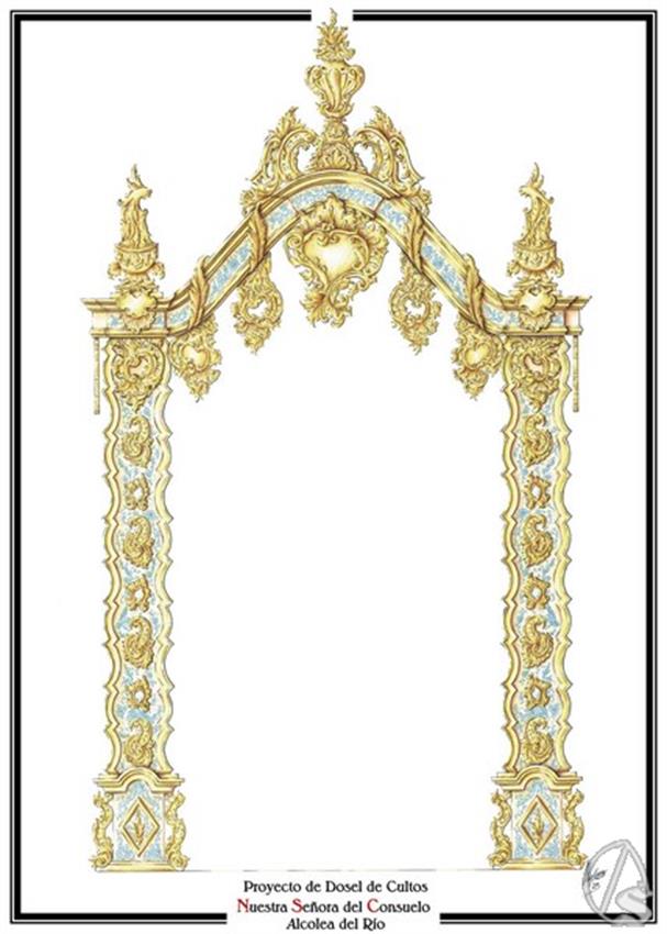 Arte Sacro. Con el fin de dignificar y engrandecer aún más si cabe el altar de cultos de la Virgen del Consuelo de Alcolea del Río, se proyecta por D. Ismael Martínez Lunar, el nuevo dosel con estructura tradicional de fondo (parte vertical) y cubierta o pabellón (parte horizontal) para realizarlo en madera tallada, dorada y pintada, creando así un aspecto visual armonioso sin caer en un lenguaje excesivamente recargado.