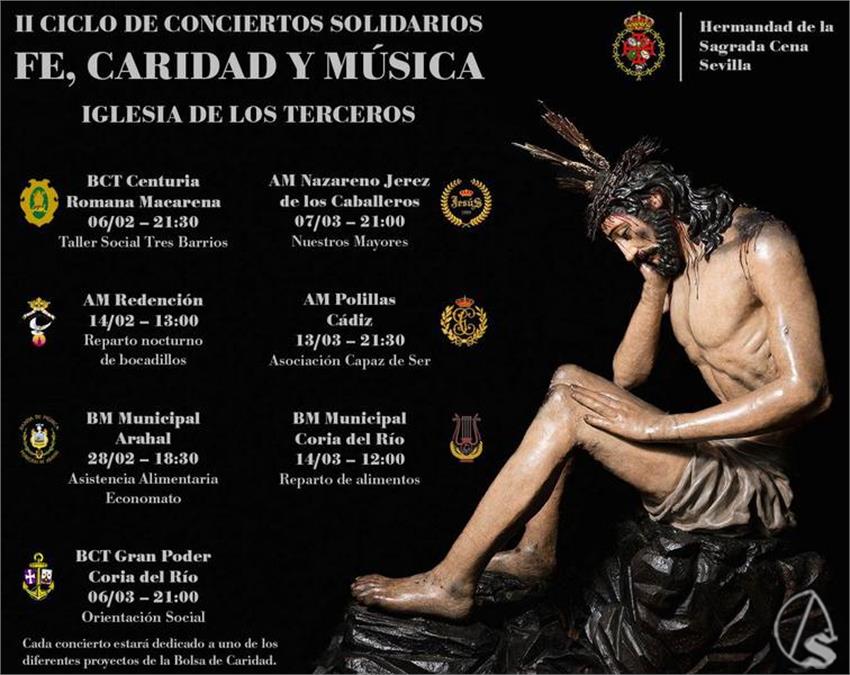Arte Sacro. La Hermandad de la Sagrada Cena celebra el II ciclo de conciertos "Fe, caridad y música" en la iglesia de los Terceros, estando cada concierto dedicado a uno de los diferentes proyectos de la Bolsa de Caridad Santísimo Cristo de la Humildad y Paciencia.