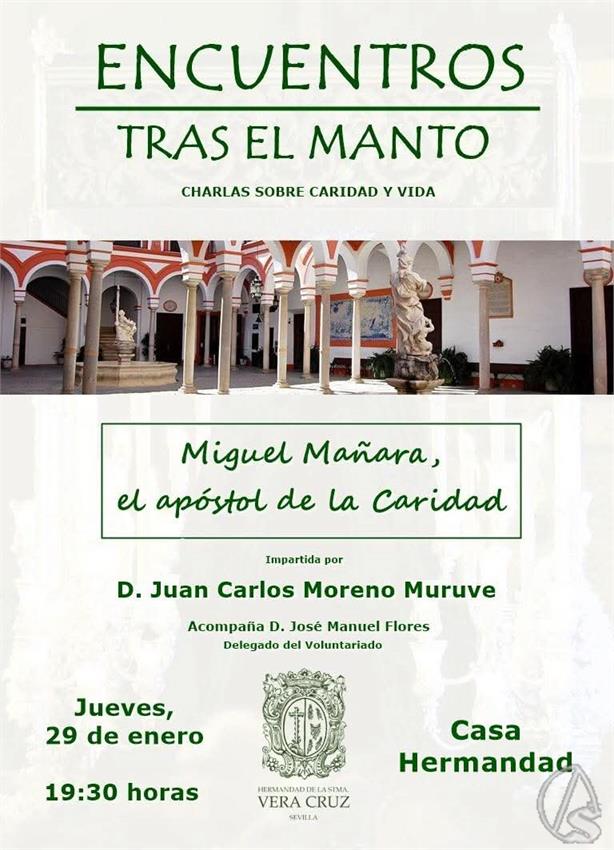 La conferencia hablará sobre el venerable Miguel de Mañara, y llevará por título «Miguel de Mañana, el apóstol de la Caridad». Mañara fue un laico noble sevillano, que decidió dejar su vida acomodada para ayudar a los pobres, a los que llamaba «mis amos y señores». Dentro de esa labor constante impulsó la construcción de la Iglesia de San Jorge y el hospiral, siendo además el refundador de la hermandad de la Santa Caridad.