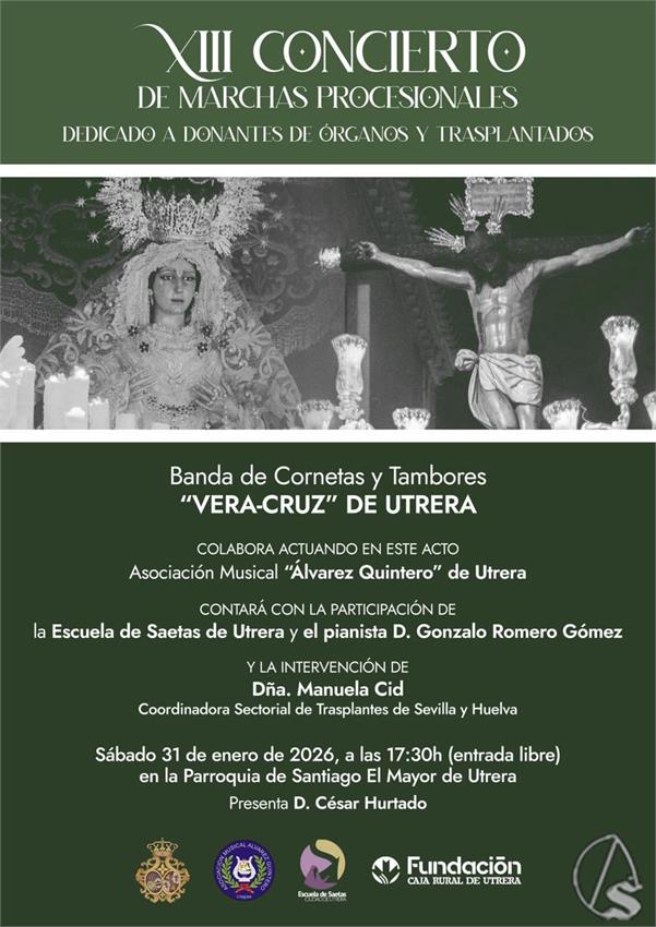 Arte Sacro. Bajo las bóvedas del tiempo y la fe, Utrera volverá a encontrarse con el pulso solemne de sus marchas procesionales en una cita que trasciende lo meramente musical para adentrarse en lo espiritual y lo humano. El próximo sábado 31 de enero de 2026, a las 17:30 horas, la Parroquia de Santiago el Mayor acogerá el XIII Concierto de Marchas Procesionales, una convocatoria ya consolidada en el calendario cofrade local y que este año adquiere un significado especialmente profundo.