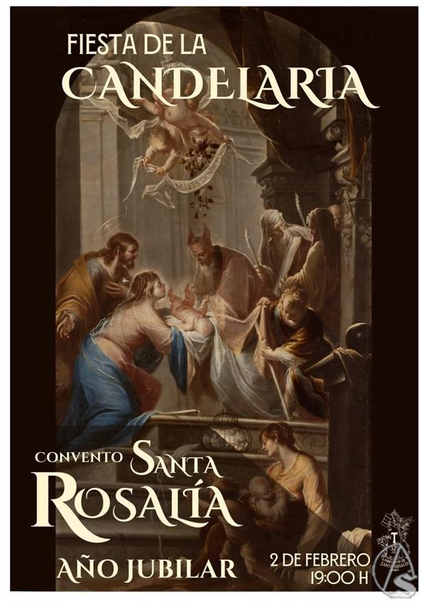 Arte Sacro. Dentro de los cultos extraordinarios por el Año Jubilar con motivo del CCCXXV aniversario de la fundación del convento de Santa Rosalía, el día 2 de febrero a las 19 horas, tendrá lugar la solemne eucaristía con motivo de la fiesta de la Presentación de Jesús en el templo.
