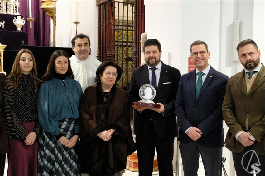 Fue la viuda de Pepe, María Teresa, quien entregó el galardón, acompañada de sus hijos, Álvaro Juan José y Ana y sus nietos. La Hermandad entregó a María Teresa un cuadro donde se ve a Pepe Peregil portando en un Vía Crucis a su Cristo de la Exaltación.