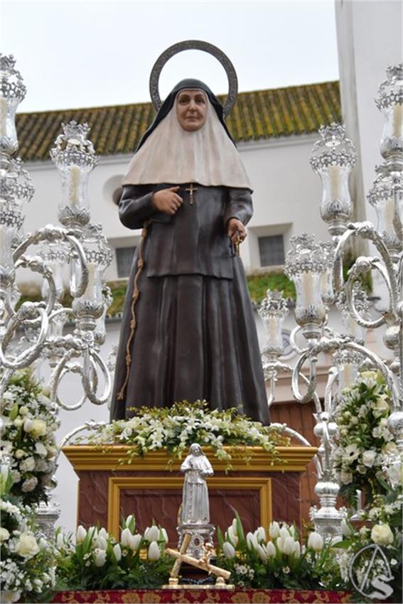La bella imagen de Santa Ángela de la Cruz procesionó sobre un hermoso paso iluminado por candelabros de guardabrisas de plata y sobre alta peana de madera. El paso estuvo exornado con una diversidad de flores de tonalidades blancas. Acompañó con sus sones la Banda de Música de Montellano. Hay que recordar la labor que realiza la Agrupación Hermanos del Costal con las Hermandades y Asociaciones de Montellano que colaboraron con esta extraordinaria procesión.