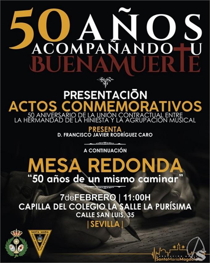 Arte Sacro. La Hermandad de la Hiniesta y la agrupación musical Santa María Magdalena celebrarán este sábado un acto con motivo del 50º aniversario de la histórica vinculación que ambas instituciones mantienen desde hace cinco décadas. Este hito será marcado con la firma del contrato conmemorativo y la presentación oficial del logotipo diseñado para la efeméride.