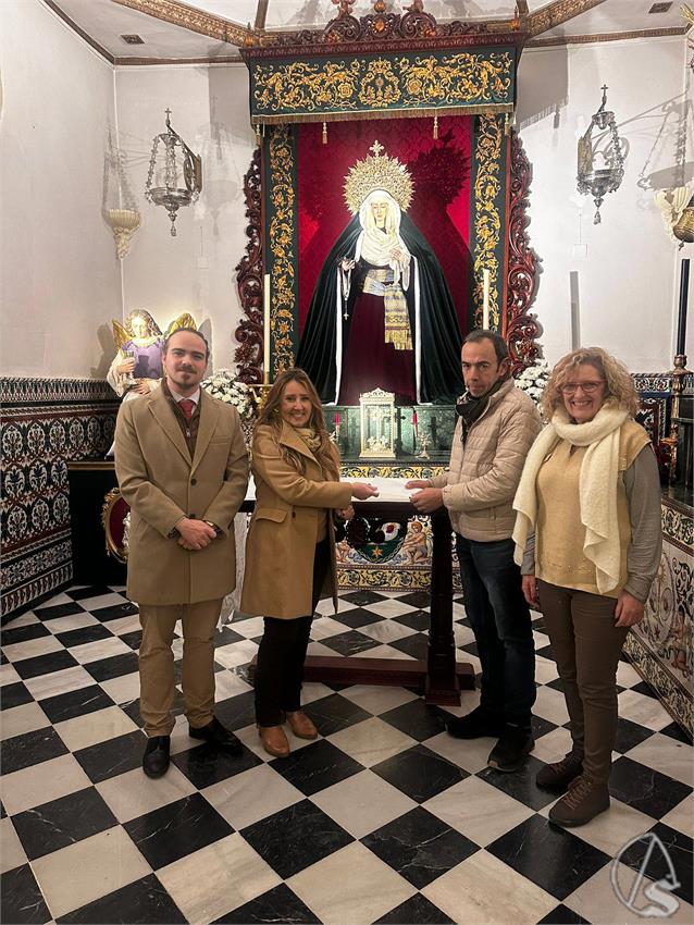Una representación de autoridades de la Directiva de la Asociación Cultural Lauretum y de la Hermandad Sacramental de Valencina, lo citaron en la tarde de ayer en la parroquia, para bajo las plantas de la Virgen de los Dolores, hacerle entrega de la misiva del nombramiento a Doroteo.