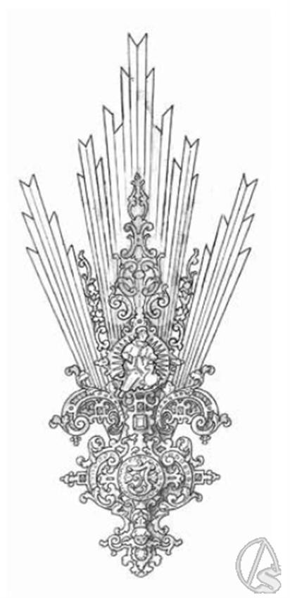 En la parte superior, representando los tres templos en los que la sagrada imagen ha recibido culto, otra media esfera aloja una pequeña imagen de San Luis de Francia en la potencia de la izquierda, el Corazón con los Siete Puñales como símbolo de la parroquia del Cerro en la potencia central, y San Gil Abad en la potencia de la derecha.