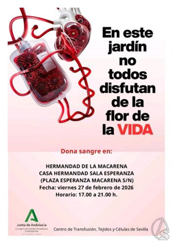 Arte Sacro. La Asistencia Social de la Hermandad de la Macarena, para donar esperanza y vida en colaboración con el Centro de Transfusión, Tejidos y Células (CTTC) de Sevilla, organiza una campaña de donación de sangre para atender las necesidades urgentes de los hospitales de nuestra provincia.