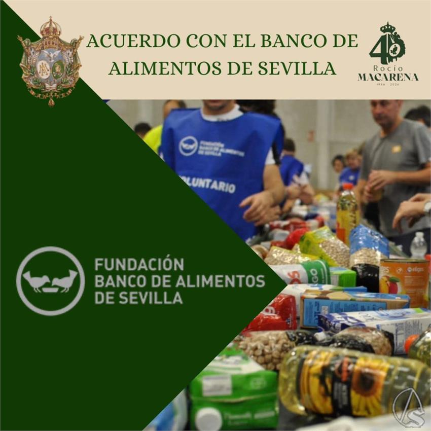 Arte Sacro. La hermandad de Nuestra Señora del Rocío de la Macarena informa con enorme satisfacción de la consecución de un acuerdo de colaboración con el Banco de Alimentos, fruto de un riguroso y prolongado proceso de trabajo desarrollado desde nuestra Diputación de Caridad y Obras Asistenciales.