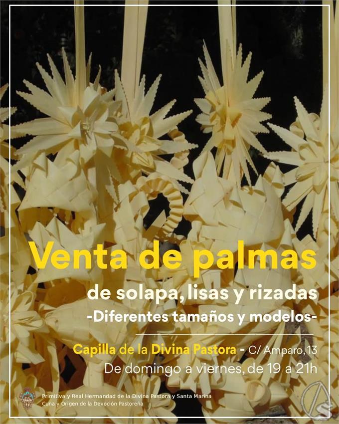 Arte Sacro. Con el inicio de una nueva Cuaresma, la hermandad de la Divna Pastora y Santa Marina vuelve a disponer a la venta "Palmas de solapa", para lucir como bonito detalle en la "vestimenta de estreno" de tan señalada fecha del calendario católico-hispalense, con diferentes modelos para señora y caballero. Igualmente, también pueden adquirirse palmas rizadas para niños, de tres tamaños diferentes, así como palmas lisas de gran tamaño.