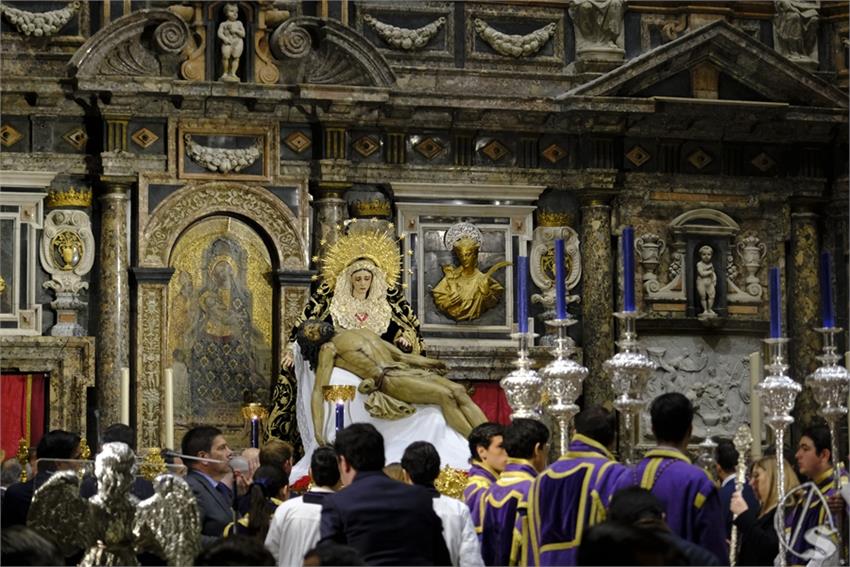Hoy domingo 22 de febrero, a las 11:15 horas, la Hermandad celebra como decimos en el trascoro de la Catedral, la función principal de instituto con la presencia de las imágenes titulares de la corporación del Arenal, el Santísimo Cristo de la Misericordia y Nuestra Señora de la Piedad Coronada, regresando a su conclusión a la capilla de la Piedad sobre las 12:45 horas con itinerario: Salida por la Puerta de Campanillas, Plaza Virgen de los Reyes, Fray Ceferino González, Almirantazgo, Arfe, Adriano y entrada en la Capilla de la Piedad.