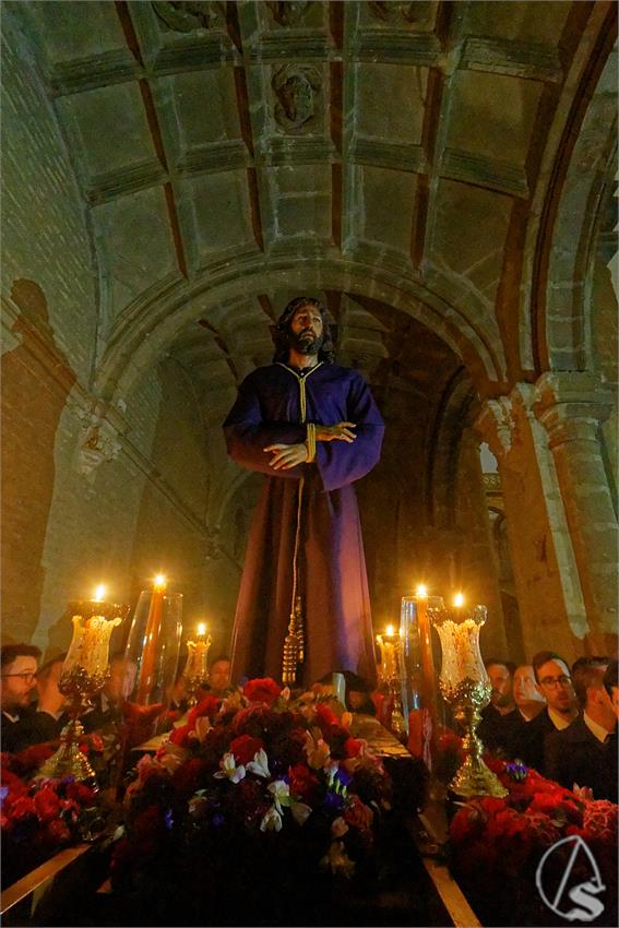 Para esta ocasión, la imagen fue trasladada en unas andas portadas por hermanos de la agrupación, que participaron activamente en el rezo público de las estaciones de la Pasión.