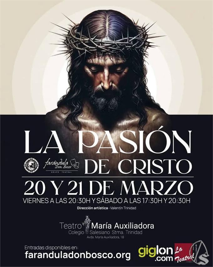 Arte Sacro. La Pasión de Cristo llega a Sevilla los días 20 y 21 de marzo, en el Teatro de María Auxiliadora del colegio salesiano de la Trinidad, sito en la Avda, Maria Auxiliadora.
