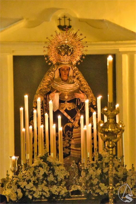 Traslado de María Santísima de las Angustias Coronada desde la Capilla de San Pedro a la Parroquia de Santa María la Mayor de Sanlúcar la Mayor para celebrar su Función.