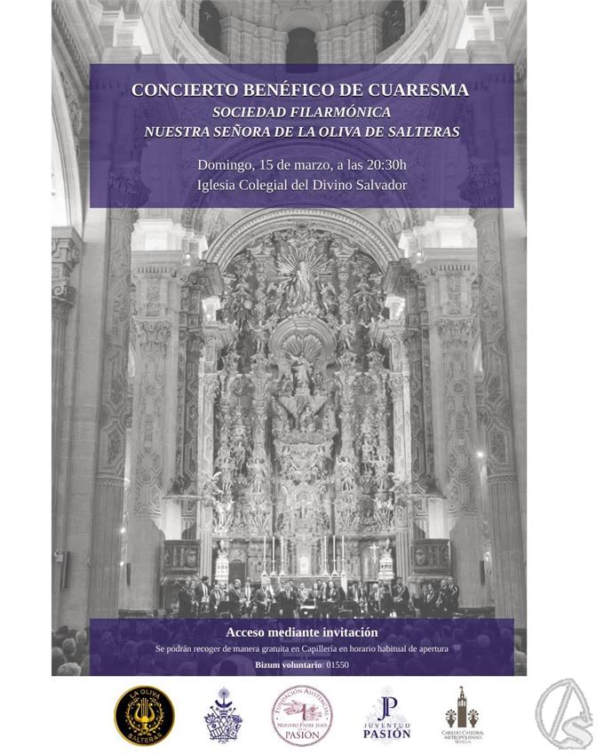 Arte Sacro. La Archicofradía Sacramental de Pasión organiza otro año más el concierto de Cuaresma, a cargo de la Sociedad Filarmónica Nuestra Señora de la Oliva de Salteras, enmarcado en las Jornadas Culturales de 2026.