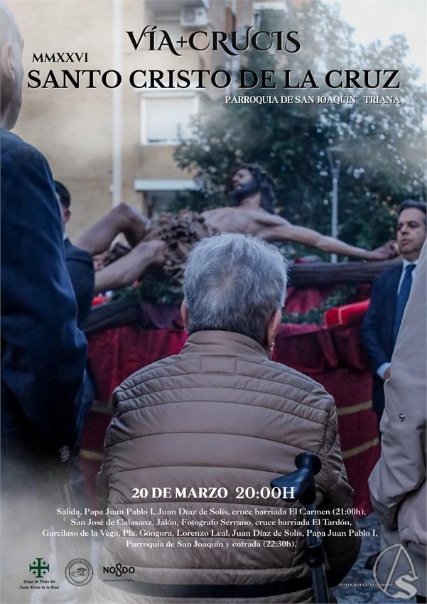 Piadoso Vía+Crucis: 20 de marzo (20 horas). Por las calles de la feligresía: Parroquia de San Joaquín, Papa Juan Pablo I, Juan Díaz de Solís, Cruce Rubén Darío, San José de Calasanz, Jalón, Fotógrafo Serrano, Cruce Rubén Darío, Garcilaso de la Vega, Arcipreste de Hita, Gonzalo de Berceo, Plaza de Góngora, Gabriel y Galán, Morovelli de Puebla, Lorenzo Leal, Juan Díaz de Solís, Papa Juan Pablo I y parroquia de San Joaquín (22,30 horas). Acompañará musicalmente el trío de capilla Sacrum.