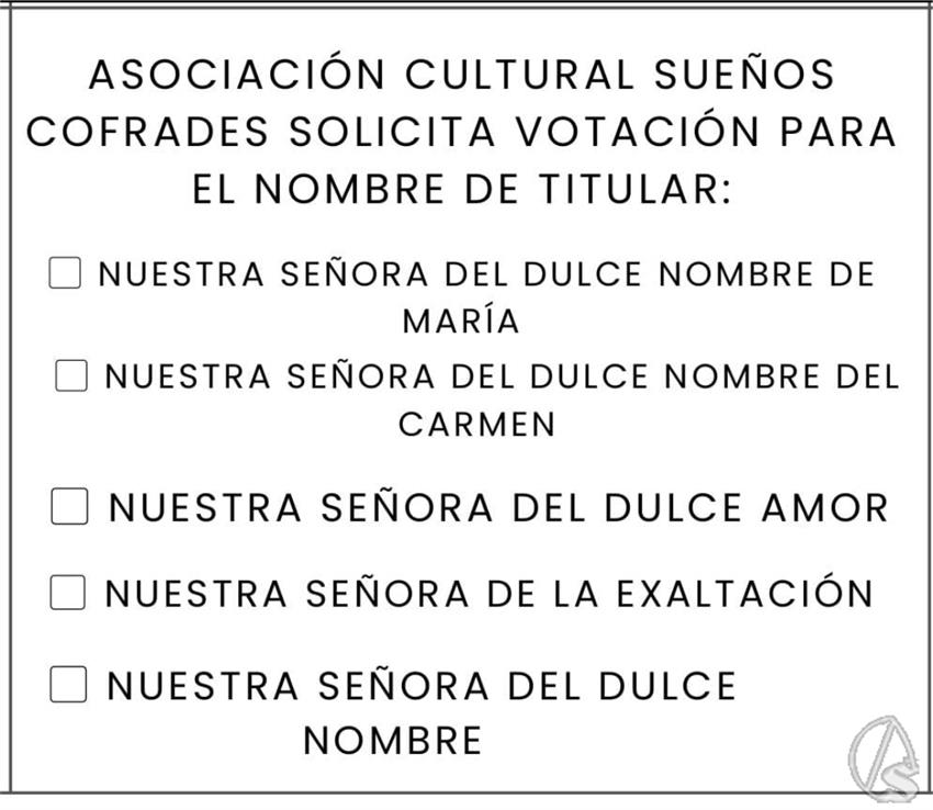 Arte Sacro. El pasado domingo, 15 de marzo, se realizó la votación para elegir la advocación de la futura dolorosa de la Asociación cofrade Sueños cofrades, que saldrá en procesión el día 03 de octubre.