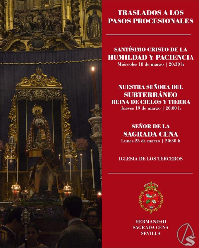 Arte Sacro. Como es costumbre, la hermandad de la Sagrada Cena celebrará en los próximos días los traslados públicos de sus sagrados titulares a sus pasos procesionales.