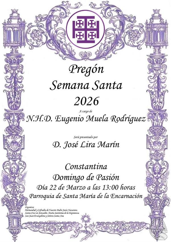 Provincia. Jesús Nazareno convoca el Pregón de la Semana Santa constantinense